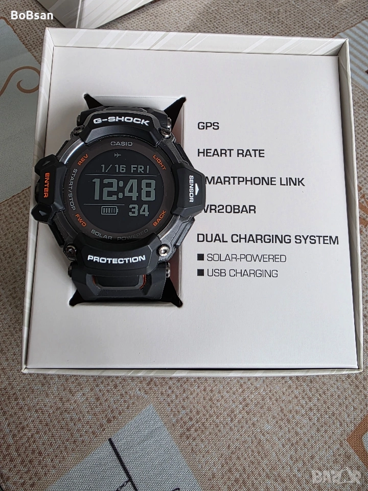 Bluetooth 4.0 връзка - Часовника сам се сверява на съответната географска ширина, на която сте. А с едно натискане на бутона и чрез синхронизация с вашия телефон, от софтуера на смартфона ви може да избирате второ време, както и да сверявате пускaте и спирате алармата и др.