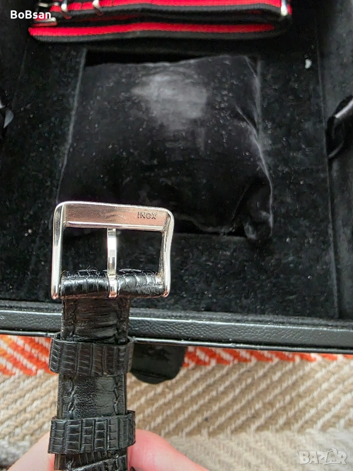 часовника. За съжаление не с оригиналната му каишка, иначе си е с оригиналния бъкъл на нея.