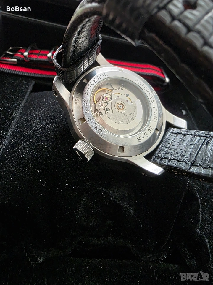 Автоматичният часовник Fortis B-42 с дата и ден Ref 655.10.158 произхожда от линията Flieger, проектирана за употреба от пилоти. Изключително четливият циферблат осигурява превъзходна четимост при всякакви условия на осветление, с луминесцентни стрелки, цифри и индекси.