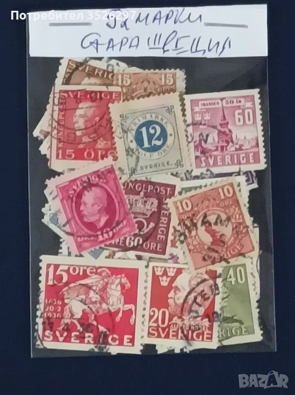 Колекция от 52 пощенски марки от Швеция от периода 1872 - 1960г. Марките са с печати и са тези от снимките за 6 евро.