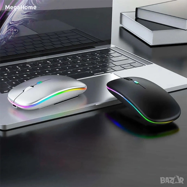 Безшумна безжична компютърна мишка с 10-метров обхват, Soft Touch покритие и подсветка.