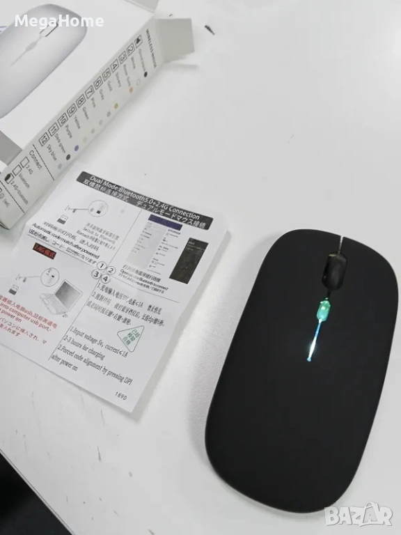 Безжична мишка,Bluetooth 5.0 и 2.4G двоен режим, тихо щракване, RGB LED, 1600 dpi,Акумулаторна