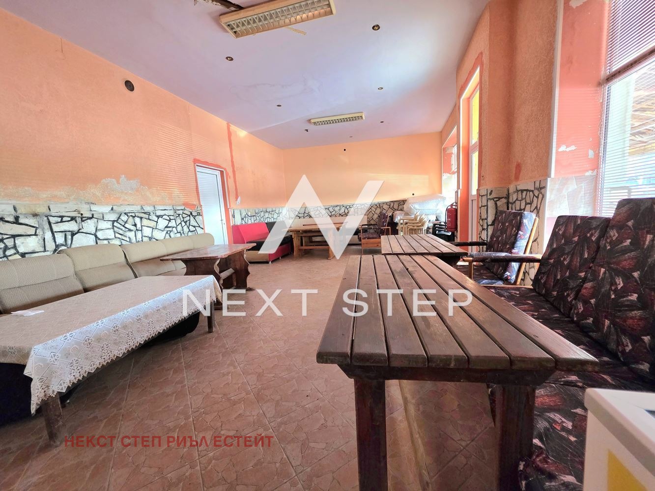 Некс Степ Недвижими Имоти Ви представя помещение със статут на кафе-аперитив в с. Найден Герово напълно готово за работа и оборудвано, разположено в центъра на селото.