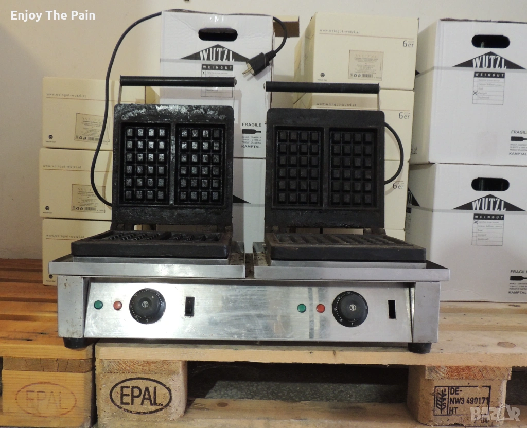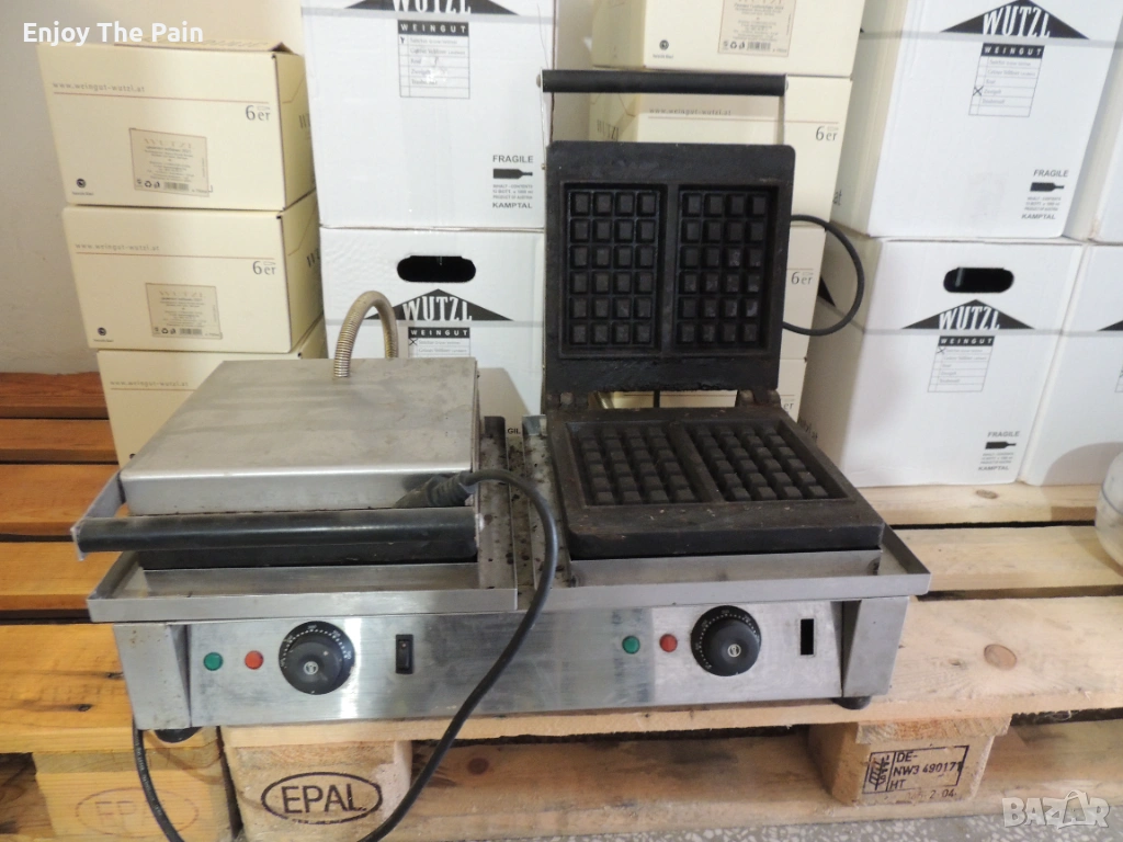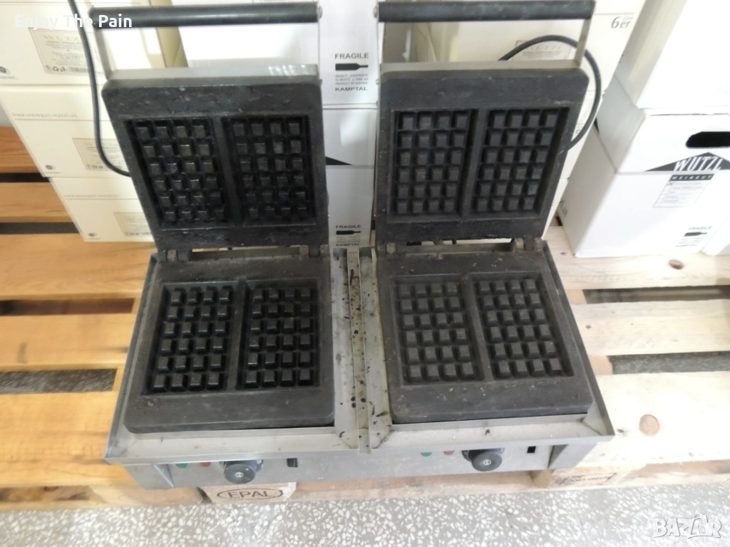 Професионален двоен гофретник с чугунени плочи. Масивно изделие с много добра изработка!