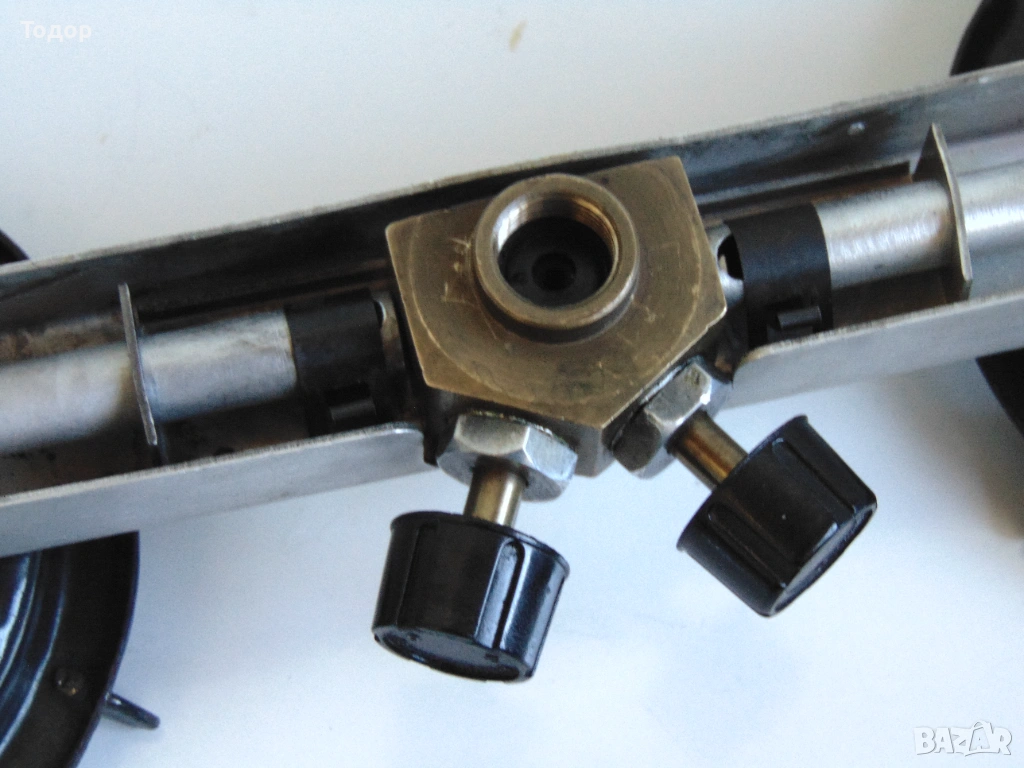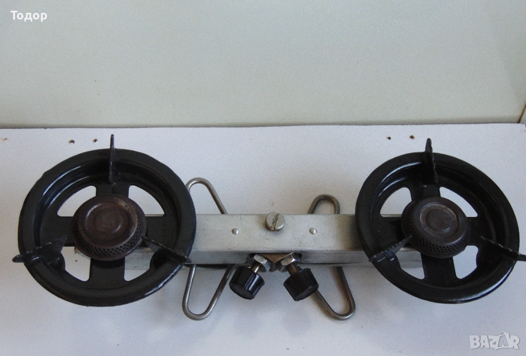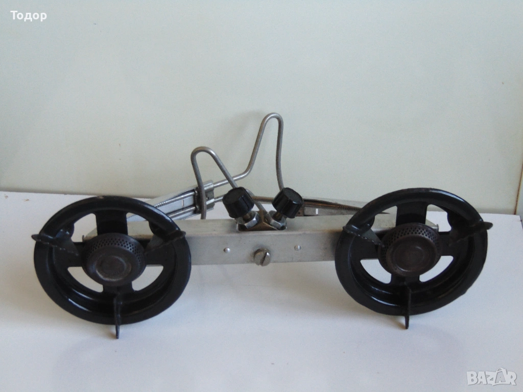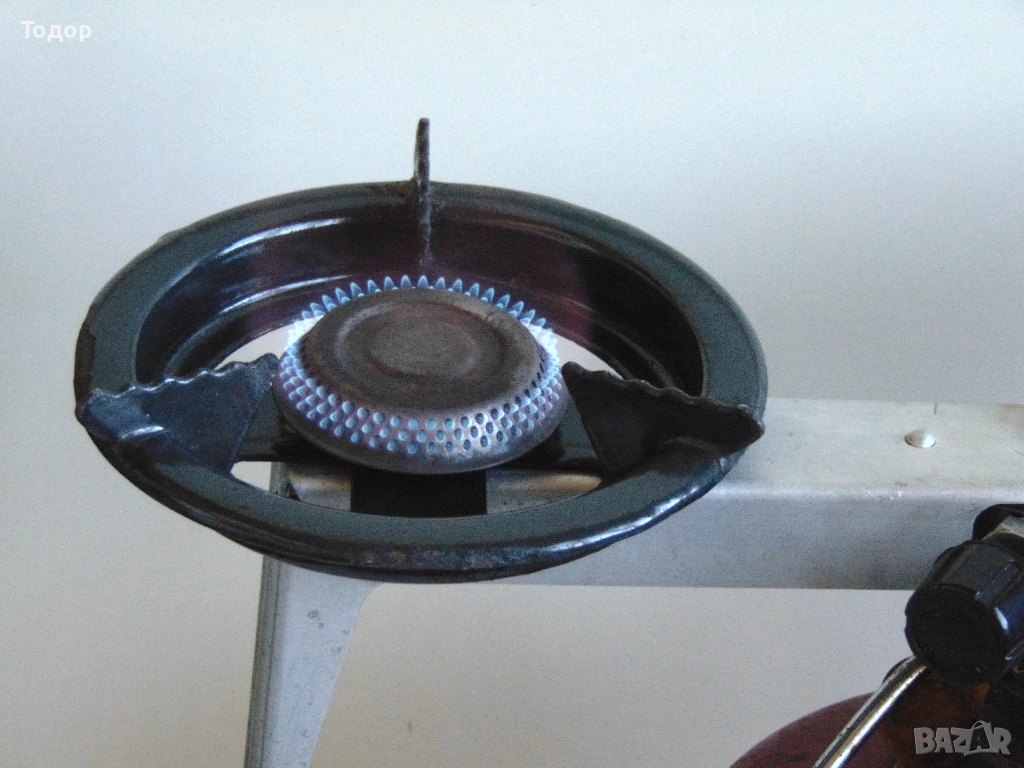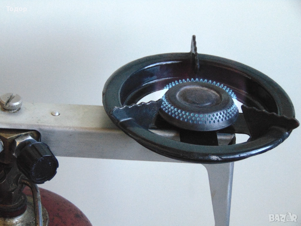 Работи с български и полски туристически газови бутилки с присъединителна резба 3/8G лява. В много добро състояние, работи без забележки.