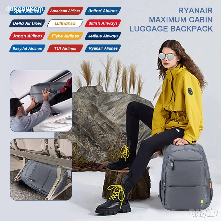Пътническа раница 40×20×25 см за Ryanair – водоустойчива, 20L