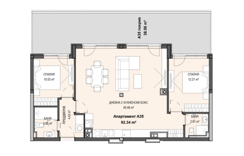 -покривна тераса с площ близо 40 кв.м, с излаз от всички помещения;