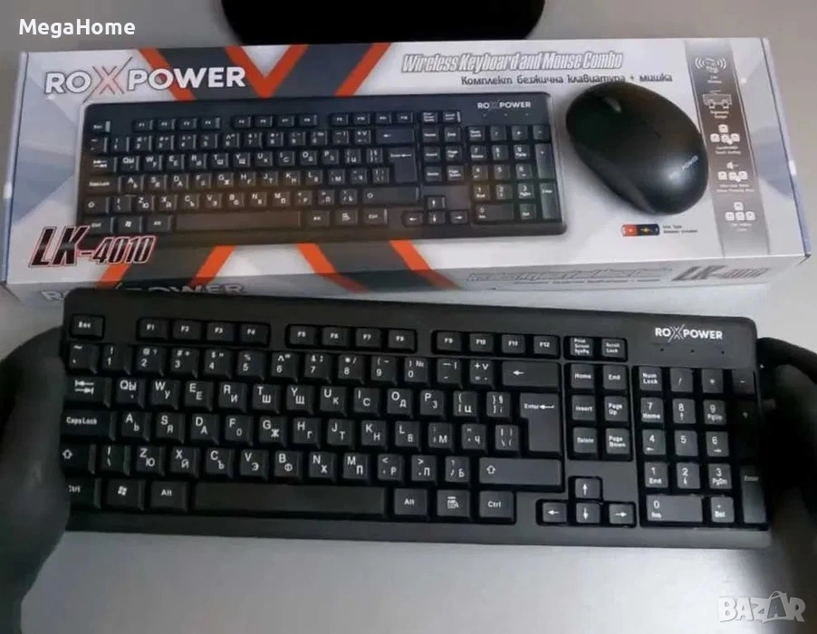 Клавиатурата в комплекта разполага с кирилизирани бутони и работи с батерии. Мишката е оптична и разполага с висок DPI - 1200. Тя също работи с батерии.