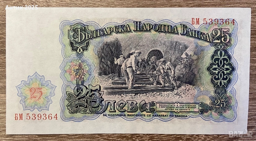 България, 25 лева (1951 г.) – стара банкнота от периода на НРБ