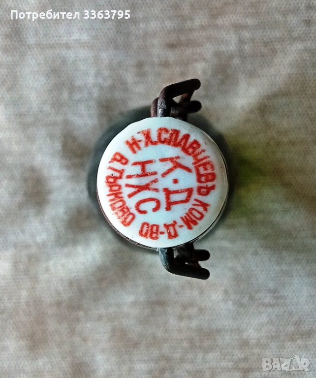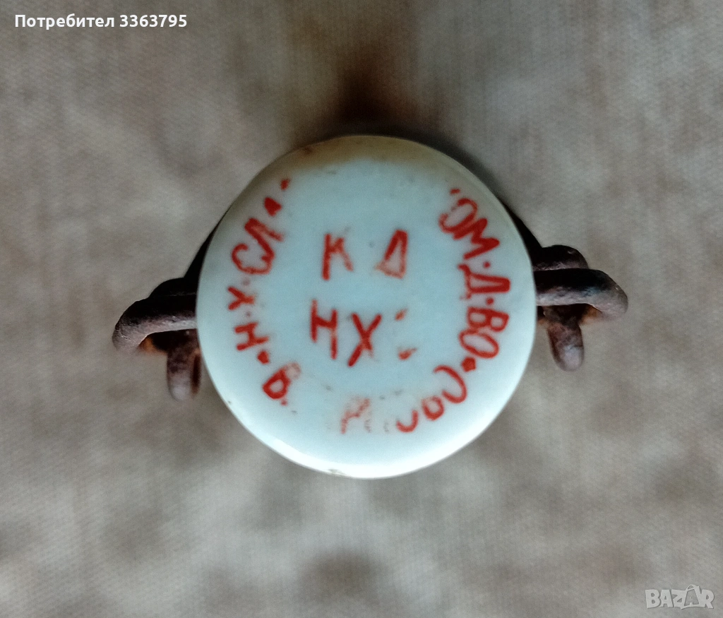 заличен надпис за вместимост. Металните скоби са корозирали, което потвърждава