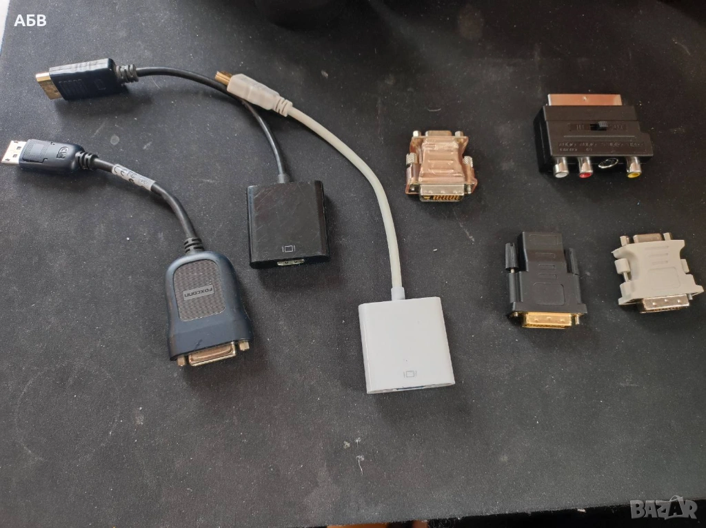 Пасивните адаптери са показани на последните 3 снимки като различни комбинации между HDMI, VGA, DVI, DP, AV, SCART интерфейси.