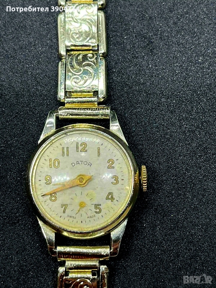 Рядък дамски часовник от 70-те години на швейцарската марка Dator.Механичен,със секундна стрелка на шест часа.Работи коректно,с нормални следи от употреба за годините си.