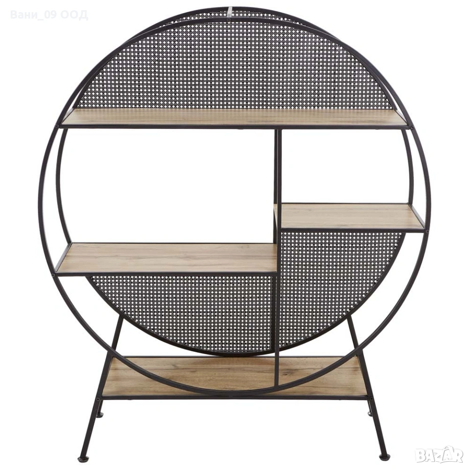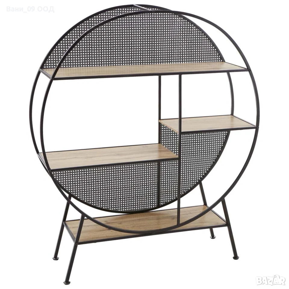 Етажерката съчетава суровата елегантност на метала и топлината на дъбовия декор. Черната рамка и светлата дървесна текстура създават модерен контраст, който привлича вниманието, без да доминира в пространството. Етажерката впечатлява с гръб във виенски стил, който добавя изтънченост и доза артистизъм, превръщайки я в акцентен елемент в интериора. Подходяща както за дневна, така и за спалня или офис. Идеална за почитателите на индустриалния дизайн, които търсят баланс между естетика и практичност.