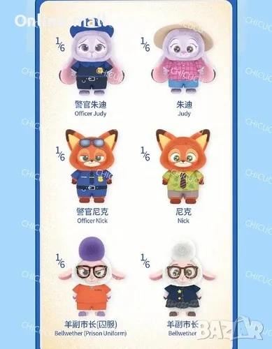 Тези колекционерски плюшени фигурки в кутия изненада (Blind Box) ще ви потопят в магията на едно от най-обичаните анимационни приключения. Във всяка кутия се крие случаен герой от 6 възможни варианта – ще получите един от любимите персонажи: Officer Judy, Judy, Officer Nick, Nick, Bellwether (Prison Uniform) или Bellwether (Classic).