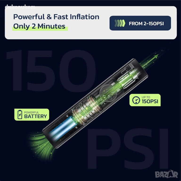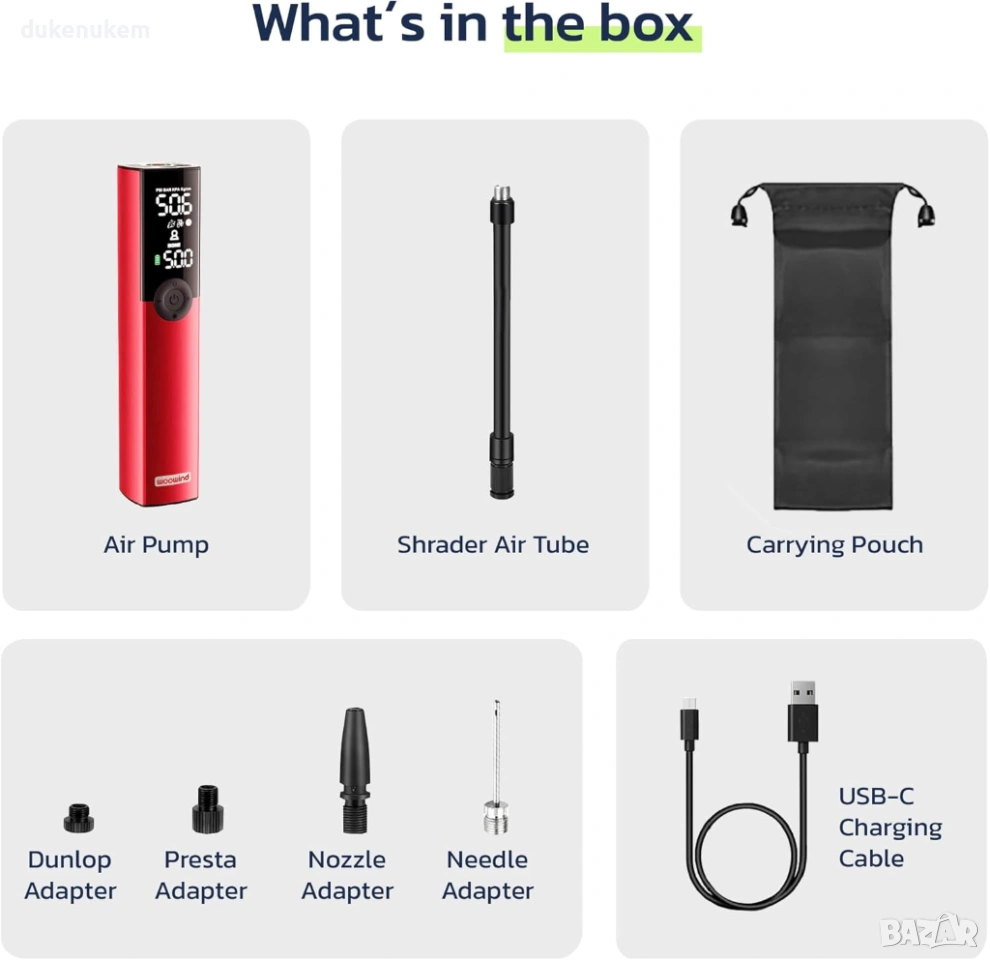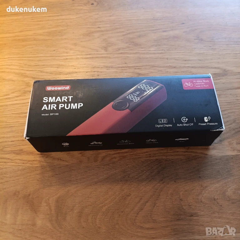 Електрическа помпа за гуми Woowind BP188 150 PSI с авто стоп, LCD дисплей