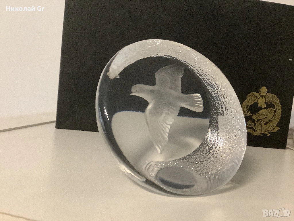 Преспапие кристал произведено в Швеция подпис Матса Йонассона “Гълъб на мира” → Обява 53230546