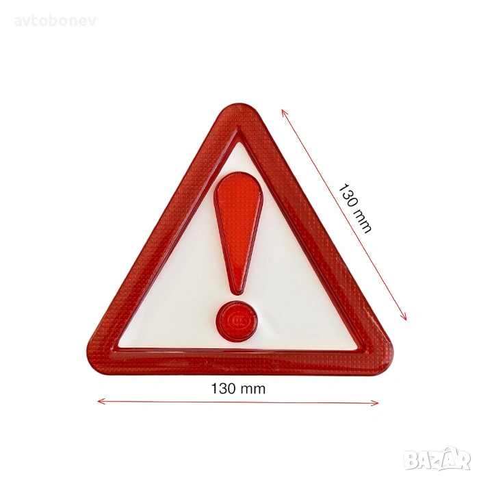 - Форма и размери: Триъгълен светлоотразител, размери 130 мм х 130 мм