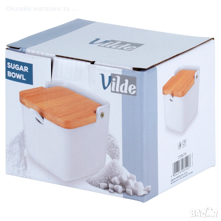Стилна захарница с накланящ се капак и лъжичка в комплекта. Захарницата е в класически стил, така че се съчетава перфектно с останалата част от съдовете за хранене. Благодарение на елегантния си дизайн, захарницата е не само практична, но и красива украса за всяка маса. Оригинален продукт на Vilde. Произведен съгласно европейските стандарти.