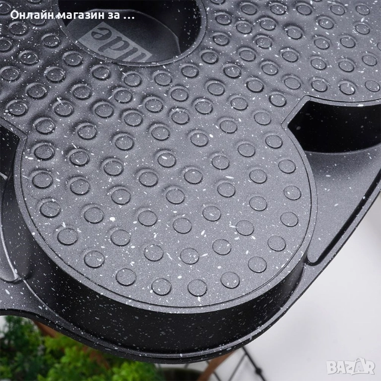 Тиган за яйца с незалепващо покритие и уникален, вечен дизайн. Тиганът е в модна комбинация от черно и дърво, което го прави стилно допълнение към всяка кухня. Има четири специални отвора, които позволяват да се получат ястия с перфектна кръгла форма. С нейна помощ можете да приготвите вкусни яйца на очи, любимите си палачинки за закуска или мини палачинки. Незаменима в всяка кухня, тя улеснява готвенето и придава перфектен вид на ястията. Изработена от най-висококачествени материали, при правилна употреба ще ви служи дълги години. Оригинален продукт на марката Vilde от серията Black&Wood. Произведена в съответствие с европейските стандарти.