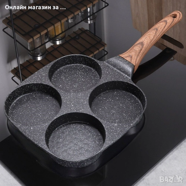 Тиган с 4 отделения за омлет, яйца на очи, палачинки и др. Незалепващо покритие, 19x19см 199009
