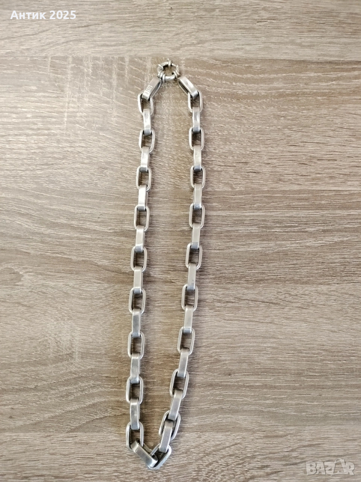 Продавам масивен мъжки синджир от сребро проба 925. Моделът е с едри, плътни звена и стилен, изчистен дизайн. Подходящ е както за ежедневно носене, така и като силен акцент към по-елегантна визия.