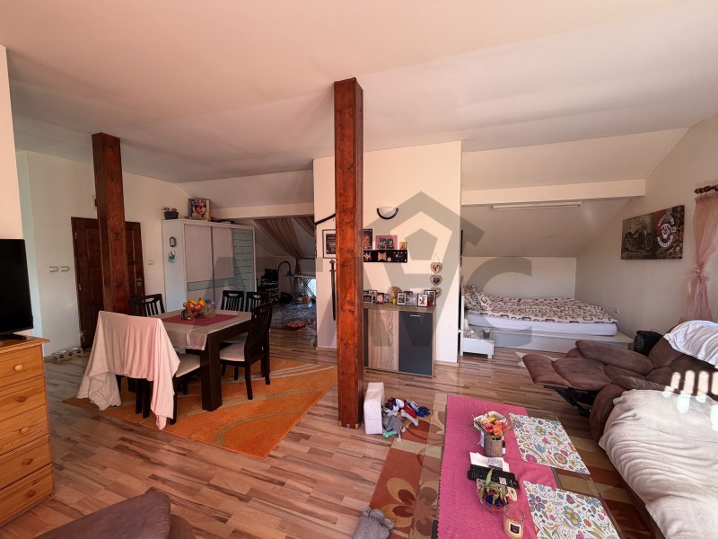 Представям Ви просторен мансарден апартамент в тухлена сграда, разположена в сърцето на кв. Кючук Париж. Имотът е с площ от 110 кв.м., като в него са обособени трапезария, кухня, всекидневна част, спалня и баня с тоалетна с мокро помещение и прекрасна южна тераса със страхотна гледка. Апартаментът е с изложение юг, изток и север, което осигурява добра естествена светлина през целия ден. Намира се в малка сграда с едва 6 апартамента и собствен двор. Свободно паркиране в района. За повече информация се свържете с мен на посочения телефон.