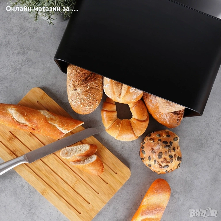 Просторна кутия за хляб с модерен дизайн. Има практичен капак под формата на дъска от дърво, която може да се използва за нарязване на хляб. Изглежда изключително впечатляващо в кухнята. Простият, класически дизайн гарантира, че се вписва в всяка кухня. Препоръчително е дъската да се намаже два пъти с рапично масло или зехтин, да се избърше излишъкът и да се остави за няколко часа. След това се измива добре с топла вода, избърсва се и се оставя да изсъхне напълно. Благодарение на тази обработка дъската ще абсорбира по-малко влага и ще запази правилната си форма по-дълго. Дъската не трябва да се мие в съдомиялна машина. Оригинален продукт на марката Vilde. Произведен в съответствие с европейските стандарти.
