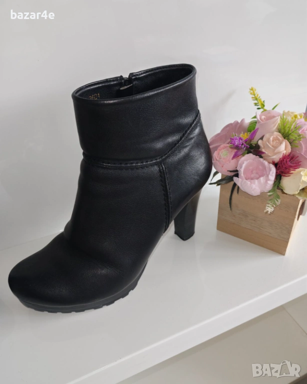 Продавам дамски боти от естествена кожа, черен цвят, номер 40, с ток.