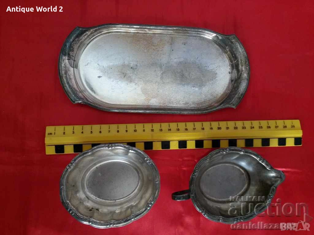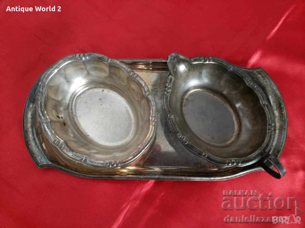 Красив Стар ПОСРЕБРЕН АРТ ДЕКО Комплект за Сосове от 20те -30те Години на Миналия Век. Маркировки. С непочистената си естествена патина.