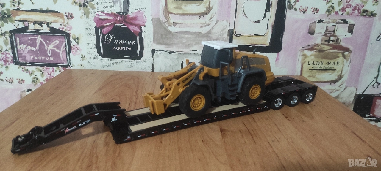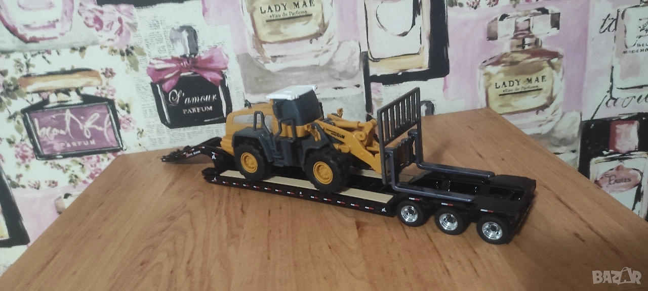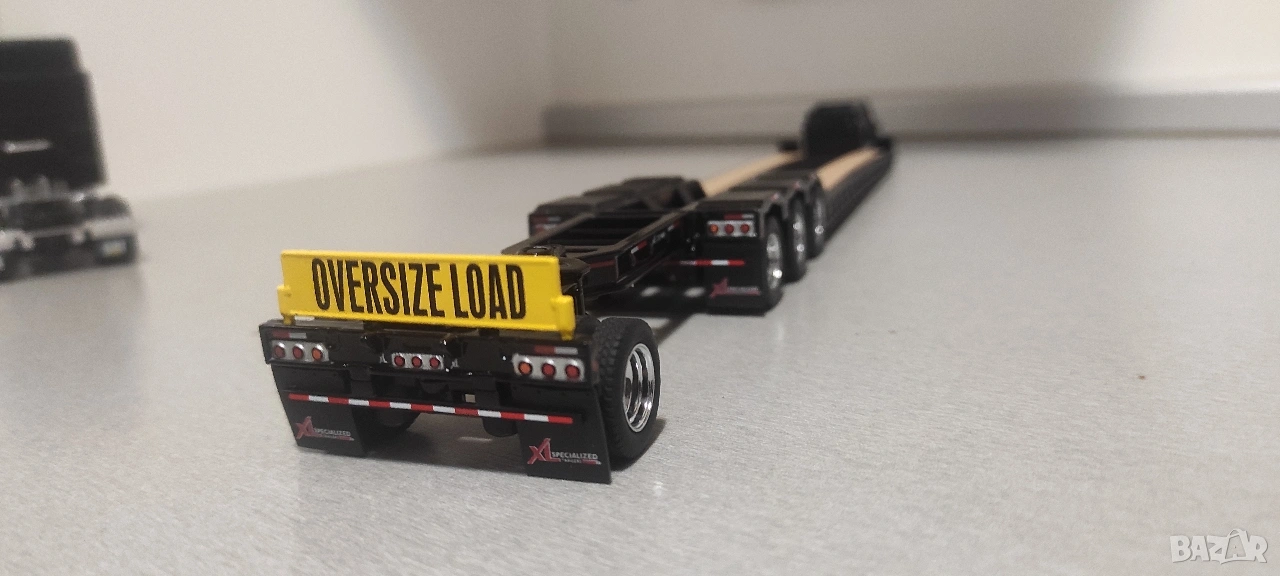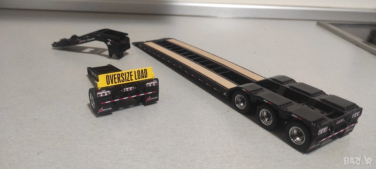 Тежкотоварно полуремарке тип Lowboy със допълнително шаси за по тежките товари изцяло метално с активни елементи ново (цената е без влекача от последната снимка той е да се сдобие представа и се продава в отделна обява с оригиналното му ремарке , но към нея давам подарък кариерна фадрома за гранитни блокове , не е колекционерски модел пластмасов е , но е мащаб 1:50) !