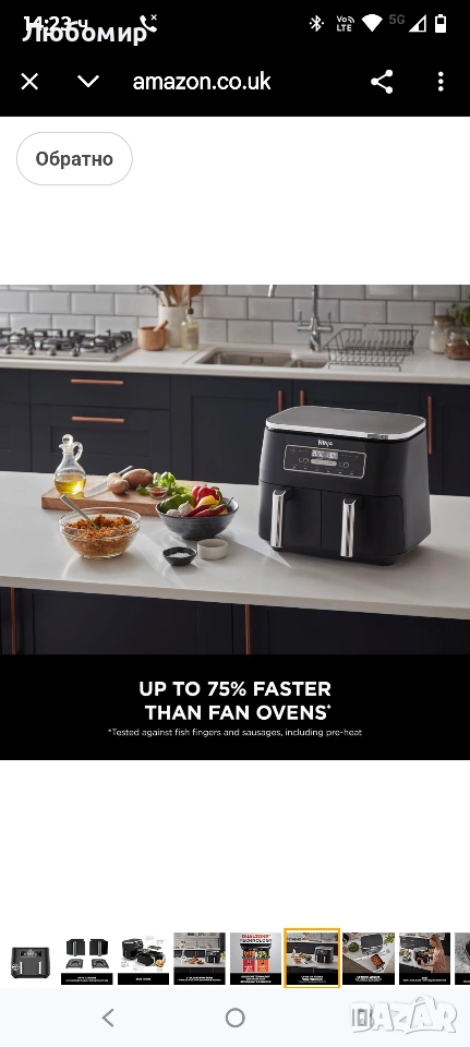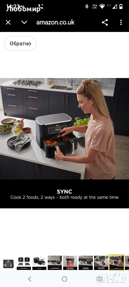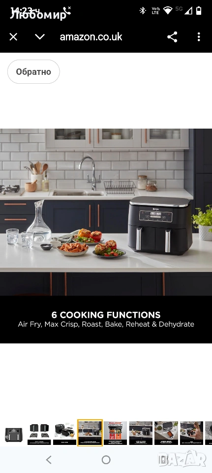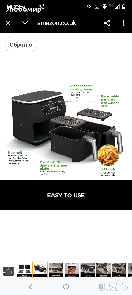 ВКЛЮЧВА: Фритюрник Ninja с горещ въздух (щепсел за Обединеното кралство), 2x чекмеджета с незалепващо покритие, подходящи за съдомиялна машина с обем 3,8 л (общ капацитет 7,6 л) и плочи за хрупкави зеленчуци. Ръководство за рецепти, създадено от готвач. Тегло: 8,2 кг. Цвят: Черен.