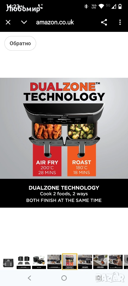 Ninja Foodi Двузонов дигитален фритюрник с горещ въздух, 2 чекмеджета, 7.6 л, 6 в 1, без олио, пържене с горещ въздух, максимална хрупкавост, печене, претопляне, дехидратиране, готви 4-6 порции, незалепващо покритие, кошници, подходящи за съдомиялна машина, черен AF300UK.ЕНЕРГОПЕСТЯВАНЕ: Спестете до 75% от сметката си за енергия* (*тестване и изчисления, базирани на препоръчителното време за готвене на наденички, използвайки функцията за пържене с въздух в сравнение с конвенционални фурни).