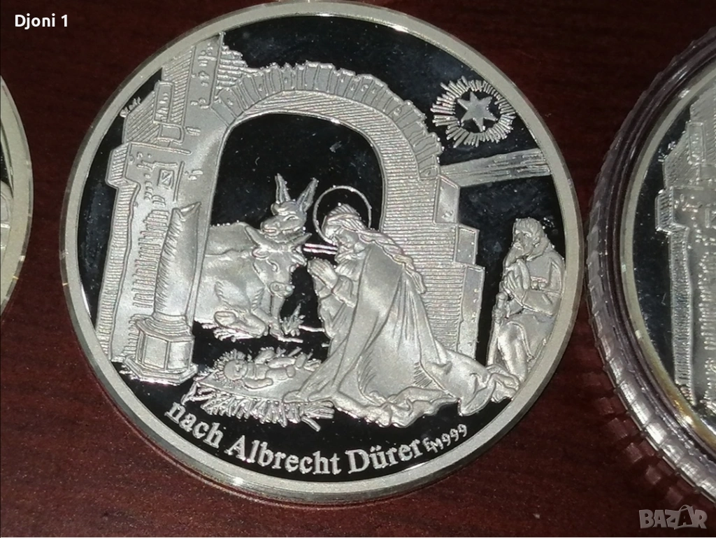Лимитиран, сребърен, възпоменателен талер, част от германската серия: „Weihnachtstaler“ (Коледен талер), който изобразява сцена на Рождество Христово по мотиви на известния художник Албрехт Дюрер.