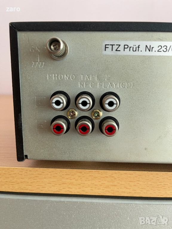 Оригинална японска машина с ясен звук и мощност 2 x 30 Watt/8Ω, честотна лента 20 Hz - 20 kHz, load impedance 8Ω - 16Ω. Сигналът е изведен с кабелчета, които да се свържат с кабелите на колоните. В цената влиза и дек, свързан с листов кабел, който работи (двигателя), но е за смяна на ремъци. Усилвателят има и три нормални чинчови входа, вкл. за грамофон.