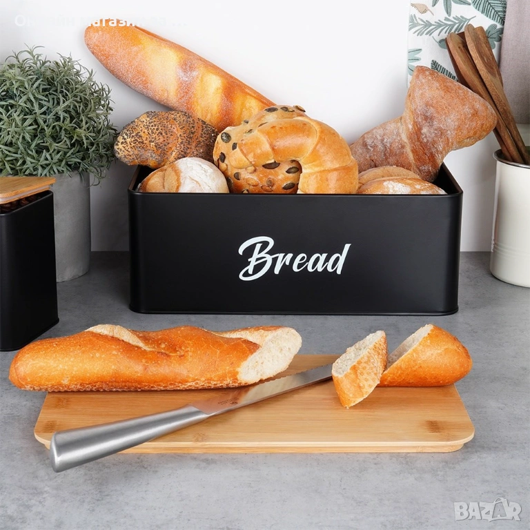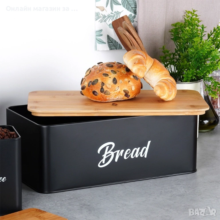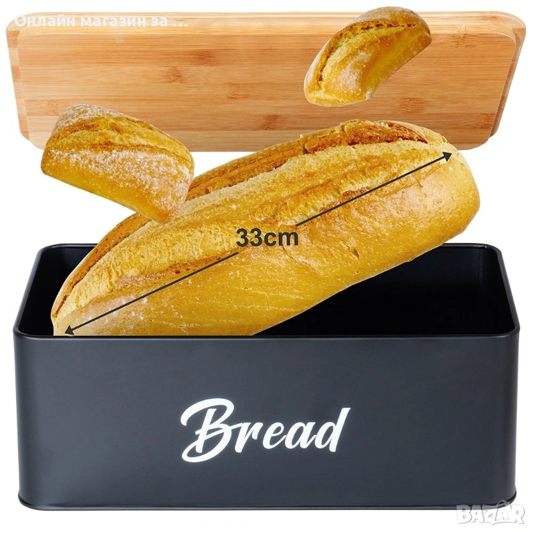 - Кутия за хляб, затваряща се с дървена дъска - Кутията за хляб има затваряне под формата на дървена дъска, която може да се използва и за нарязване на хляб.