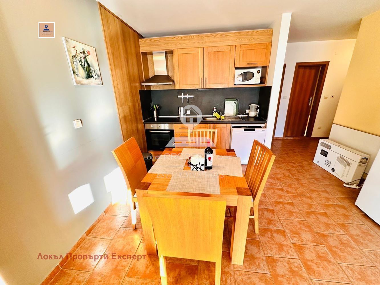 Всекидневната е обзаведена с голям кожен диван и фотьол, холова маса, трапезна маса с четири стола, оборудвана кухня, пералня, миялна машина, вградена фурна, керамични котлони и аспиратор.
