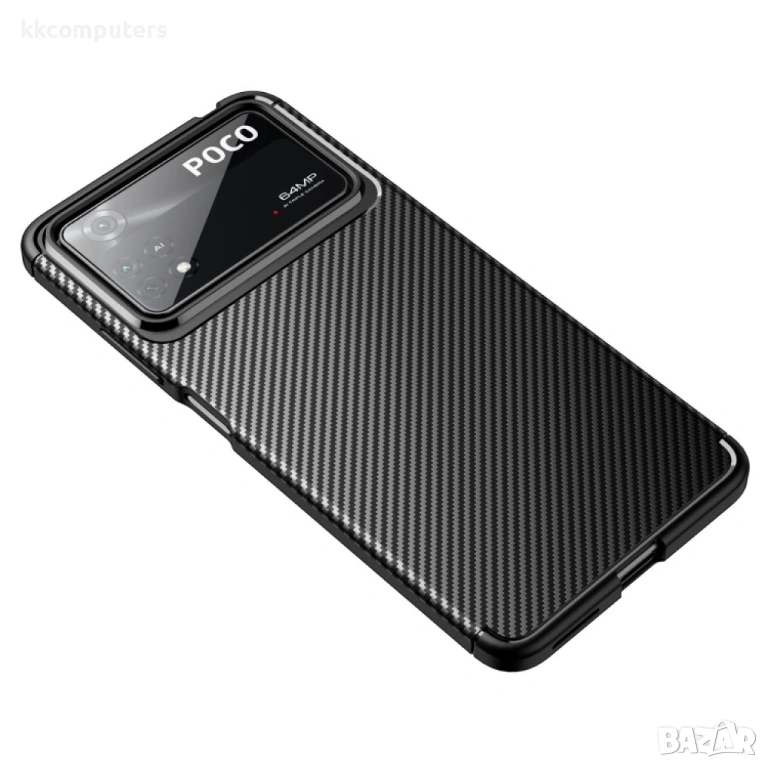 Xiaomi Poco X4 Pro 5G Удароустойчив Carbon Fiber Калъф и Протектор