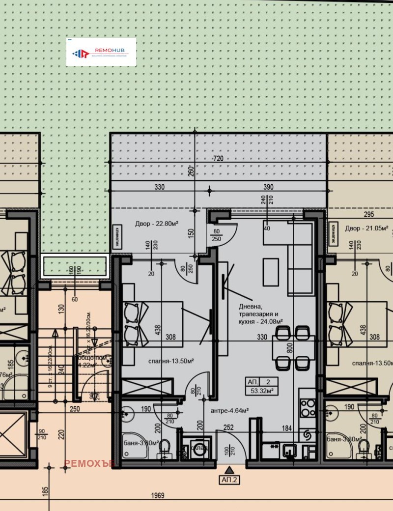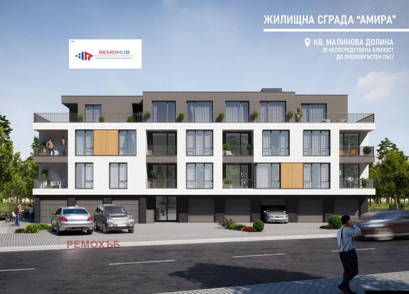РЕМОХЪБ предлага прекрасен двустаен апартамент със собствен двор в новострояща се сграда с Акт 14, в кв. Малинова долина, която ще бъде завършена през 2025 г. Сградата се състои от 4 етажа, с което гарантира достъп на естествена светлина до всички апартаменти. Намира на тихо и комуникативно място, в близост до бул. 'Околовръстен път', Ринг Мол и магазин Икеа, с лесен достъп до главни пътни артерии. Апартаментът е разположен на първи (партерен) етаж и се състои от антре, дневна с кухненски бокс, спалня, баня с тоалетна и склад. Към апартамента има самостоятелен двор. Застроената площ на апартамента е 53 кв. м., а общите части към апартамента са 6,3 кв.м. Възможност за закупуване на гараж към апартамента. За повече информация не се колебайте да се свържете с нас!