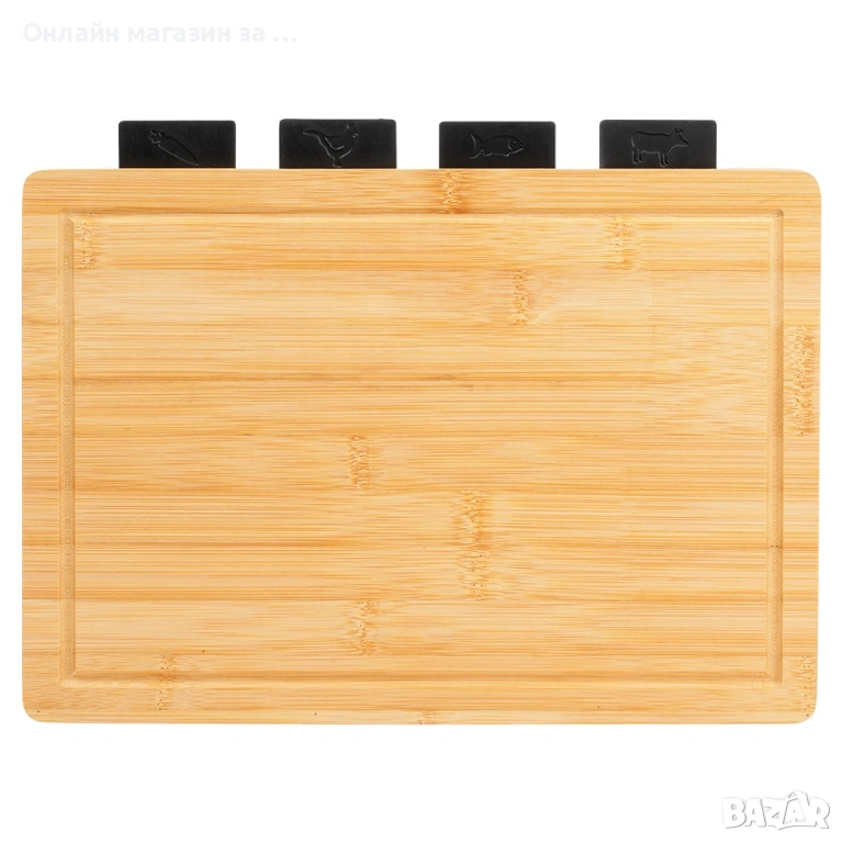 - Маркировки за лесна употреба - Всяка дъска в комплекта е предназначена за рязане на различни продукти, което се улеснява от ясните графики върху етикетите. Комплектът включва дъска за зеленчуци, птиче месо, говеждо месо и риба. Практичните маркировки помагат за бързото идентифициране на подходящата дъска и осигуряват хигиенично приготвяне на храната. Дървената дъска има практични канали за оттичане на сокове.