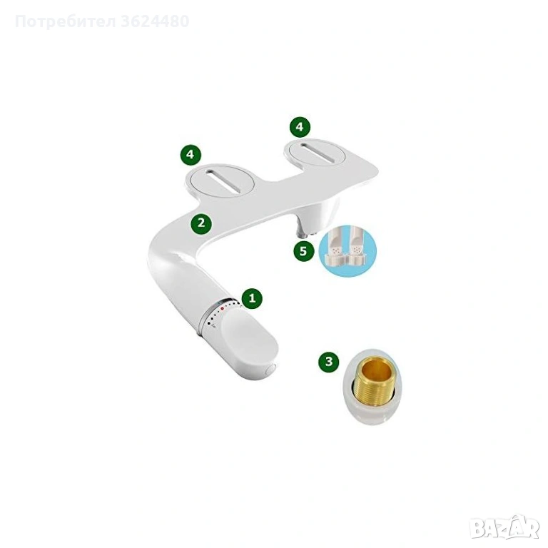 Търсите надеждно и бюджетно решение за банята? Тази механична приставка биде за тоалетна чиния е перфектната алтернатива на скъпите електронни седалки. Моделът се отличава с висока надеждност благодарение на металните си свързващи елементи и самопочистващата се технология на дюзите (позиция 5 на снимката).
