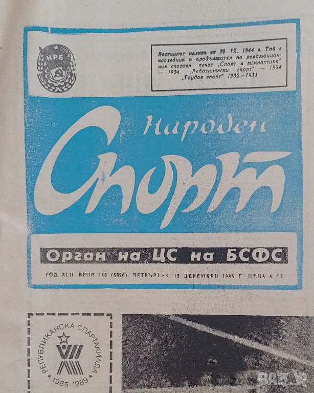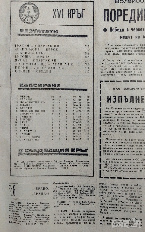 Левски Ботев Вр. 3:6 Народен спорт 12 XII 1985 → Обява 53231998