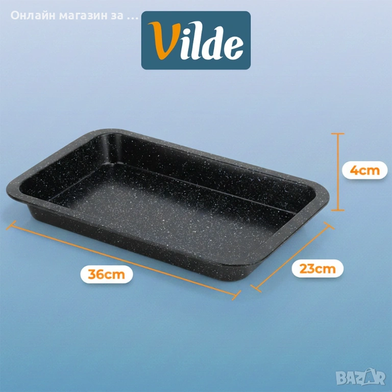 Правоъгълна тава с капак за печене на торти, приготвяне на десерти и солени ястия като ястия на фурна и др. Незаменима във всеки дом. Изработена от най-висококачествени материали, осигуряващи удобство при употреба. Безопасна за здравето и неутрална за храната. Капакът осигурява удобно транспортиране и съхранение на печените продукти. Оригинален продукт на Vilde. Произведен съгласно европейските стандарти.