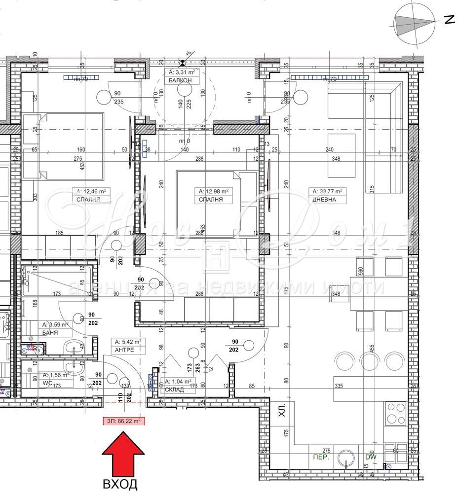Имотът представлява: Входно Антре, складово/мокро помещение, голям Дневен тракт + Кухненска част 34кв.м., ДВЕ непреходни Спални по около 13кв.м, обща Тераса 3,31м2 с излаз от всички стаи. Баня с Тоалетна, както и втора Тоалетна. Апартаментът е разположен на 4-ти етаж от 7, с изцяло западно изложение с голямо отстояние от други сгради, напълно вътрешен, без преход, без отстъп и без скосяване. Отличната му цена и локация, го правят чудесно жилище, както за живеене, така и за инвестиция със сигурен доход.
