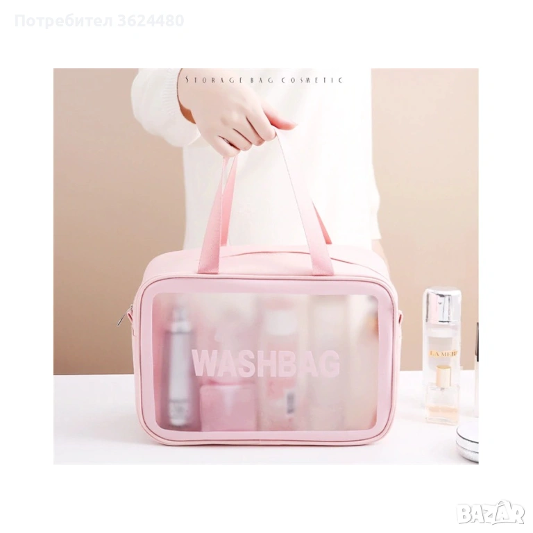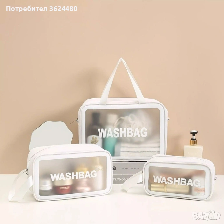 Те са водоустойчиви и много лесни за поддръжка - просто ги избършете с влажна кърпа или измийте под течаща вода. Предлагаме ви три варианта на чантичките - голяма с две дръжки, средна и малка с една дръжка. Независимо дали сте в движение или вкъщи, нашите чантички са идеални за организиране и съхранение на вашия любим грим и козметика. Заповядайте в света на пътешествията с Washbag!