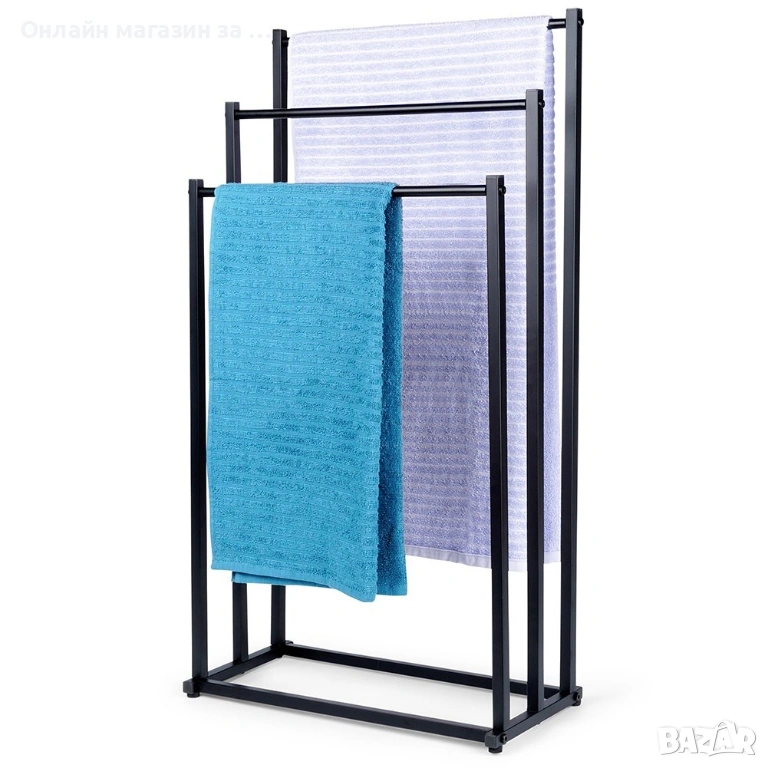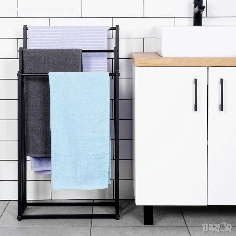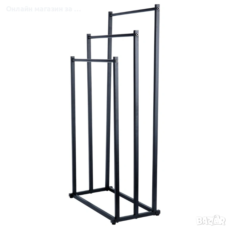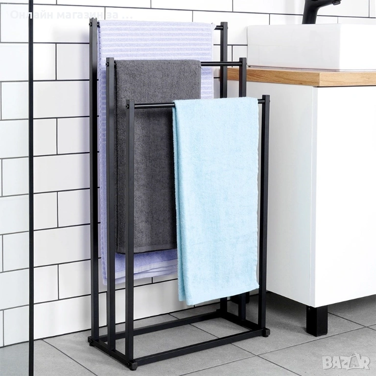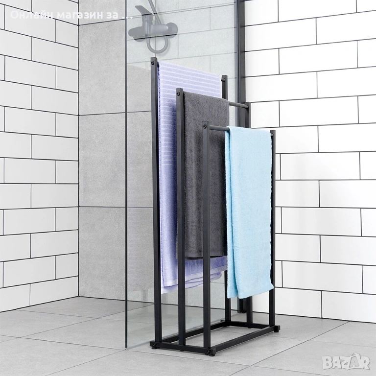 Самостоятелна метална закачалка за кърпи или дрехи. Тя ще бъде чудесен декоративен елемент във всяка баня. Здравата конструкция осигурява стабилност, позволяваща удобно подреждане на кърпите. Пасва на всеки интериор, както класически, така и модерен. Закачалката е незаменим елемент от всяка баня, улесняващ съхранението на кърпи. Оригинален продукт на Vilde. Произведен в съответствие с европейските стандарти.