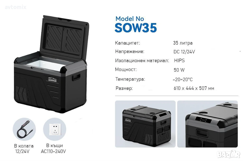 Хладилна чанта/кутия с компресор 12V/24V 100/220V 35 литра с обръщаема врата