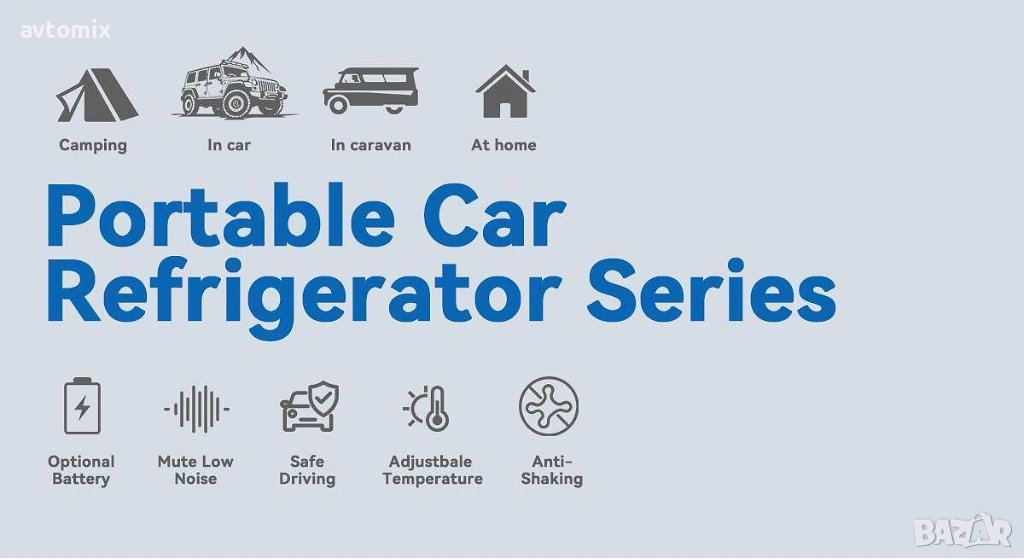 Фризер с двойна употреба: електрически компресорен хладилник и преносим къмпинг хладилник за автомобил. Подходящ за кемпер, къмпинг, риболов, барбекю и събития на открито. Универсален, с множество различни приложения за съхранение на храна и незаменимо удобство при продължително пътуване.