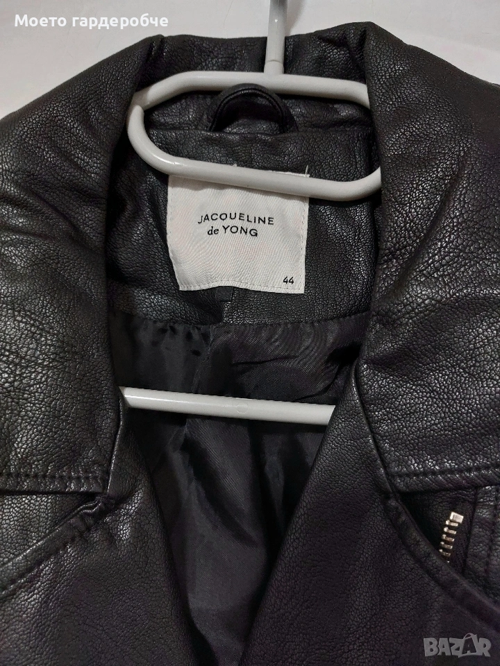 Дамско черно кожено яке. Размер 44/ Размер ХЛ. Само пробвано, липсва етикета, не е носено. Няма забележки.