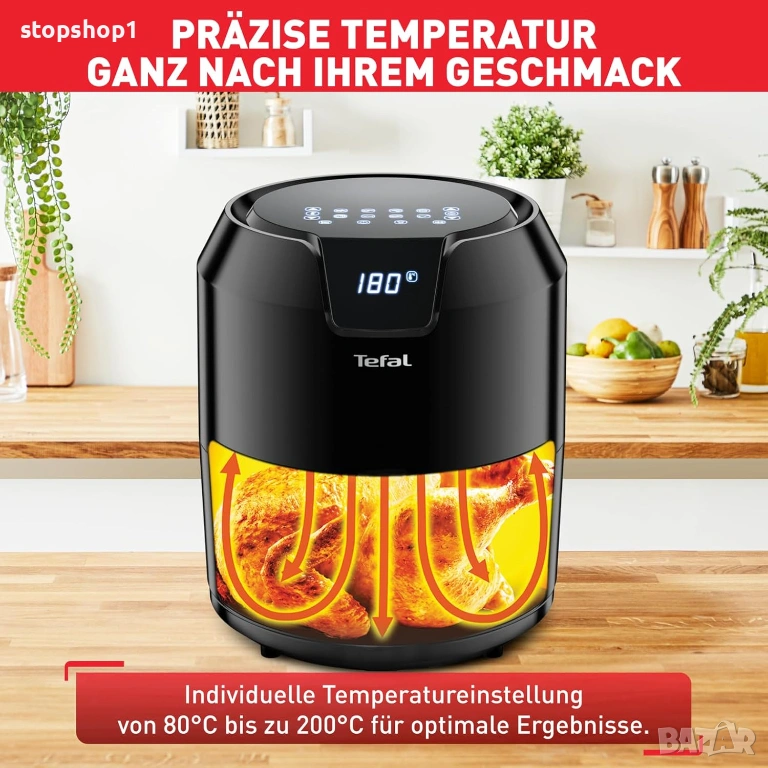 - Съдържание на кутията: Фритюрник с горещ въздух Tefal EY4018 Easy Fry precision XL + официална оригинална готварска книга (английският език не е гарантиран) | 1500 вата | капацитет 4,2 литра | автоматични програми | дигитален дисплей | таймер | без мазнина/олио | черен.