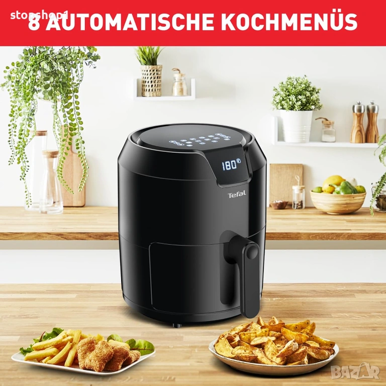 - 8 предварително зададени менюта за готвене: Пържени картофи, пържола, скариди, кексове, пица, риба, грил, печене. Интуитивен дигитален сензорен екран, здравословно пържене с малко или без олио, фритюрник с горещ въздух.